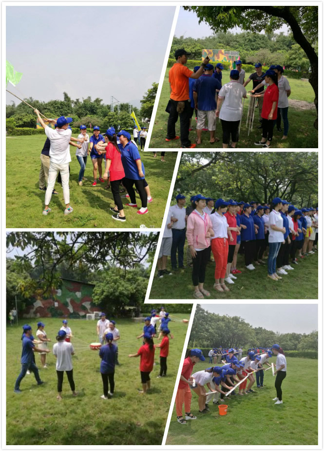 第二天,大家統(tǒng)一穿著廠服,戴著帽子,精神高漲地來(lái)到了紅旗寨拓展基地。初聽到拓展,我內(nèi)心是期待與害怕交織的,原因嘛,軍訓(xùn)的陰影還在心中。我們?cè)诮叹毜慕M織下,迅速站隊(duì),建隊(duì),起隊(duì)名,喊口號(hào)。似乎又回到了那年軍訓(xùn)的日子,只是此刻并不排斥和害怕了。我們依數(shù)字被分為4隊(duì),隊(duì)旗在風(fēng)中飄揚(yáng),激情在烈日中燃燒。四隊(duì)依次比賽,最后一名要接受“俯臥撐”和“抱蹲”懲罰。幾分鐘的練習(xí)后,隨著教練一聲號(hào)角,第一個(gè)“不倒森林”項(xiàng)目比賽開始了,團(tuán)隊(duì)圍成一個(gè)圈,每個(gè)成員拿一個(gè)棍子,用指心抓緊自己的棍子,隨著隊(duì)長(zhǎng)的口號(hào),松開自己的棍子,去抓前一位的棍子,全數(shù)。我原本以為這個(gè)游戲很簡(jiǎn)單,沒想到,訓(xùn)練過程不盡人意,隨之出現(xiàn)質(zhì)疑埋怨的聲音,結(jié)果也不意外地接受了懲罰。完成后,教官總結(jié)道要在松開自己棍子的同時(shí),為后面接你棍子的人考慮,有問題不要互相埋怨指責(zé)。是啊,在工作中,出現(xiàn)問題在所難免,指責(zé)埋怨對(duì)解決問題毫無(wú)幫助,大家在做好自己工作的同時(shí),也要鼓勵(lì)幫助別人。緊接著是再接再厲,團(tuán)隊(duì)成員從起點(diǎn)接力用竹子把球齊心協(xié)力運(yùn)到桶里面,耗時(shí)最少者勝。吸取了上一個(gè)項(xiàng)目的經(jīng)驗(yàn)教訓(xùn),我們這次互相鼓勵(lì)打氣,訓(xùn)練過程中很快完成任務(wù)。團(tuán)隊(duì)士氣高漲,在正式比賽中,結(jié)果卻不是那么理想。我想這次是輸在心態(tài)吧,訓(xùn)練的時(shí)候,沒有那么急躁,比賽的時(shí)候,急于求成,人的速度跟不上球的速度。最后一個(gè)是擊鼓顛球,這個(gè)項(xiàng)目讓我尤其感動(dòng)。在規(guī)定時(shí)間內(nèi),順利接球最多者勝。各隊(duì)用自己的方法來(lái)進(jìn)行,在每隊(duì)做任務(wù)期間,其他隊(duì)在一旁觀看。到了我們隊(duì)做任務(wù)的時(shí)候,幾乎每一次都是到同樣的數(shù)字,球就落地了,我們爭(zhēng)分奪秒繼續(xù)。這時(shí)候,旁觀伙伴們的加油聲傳來(lái),此時(shí),沒有了比賽,似乎是家人在為自己與更高自己的超越而吶喊助威。