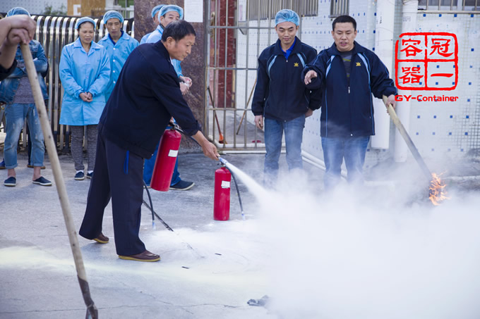 為了進(jìn)一步強化冠一公司員工的消防安全教育,提高火災(zāi)防控能力和突發(fā)事件應(yīng)變能力,學(xué)會正確使用滅火器和各類消防器材等。冠一公司于2016年12月30日上午11時,在倉儲部空地前,組織開展了一次實戰(zhàn)消防演習(xí)。