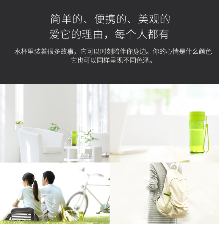 產(chǎn)品特點(diǎn):傾斜防漏,堅(jiān)固耐用,無毒塑料;熱水飲用無異味,低溫不易碎