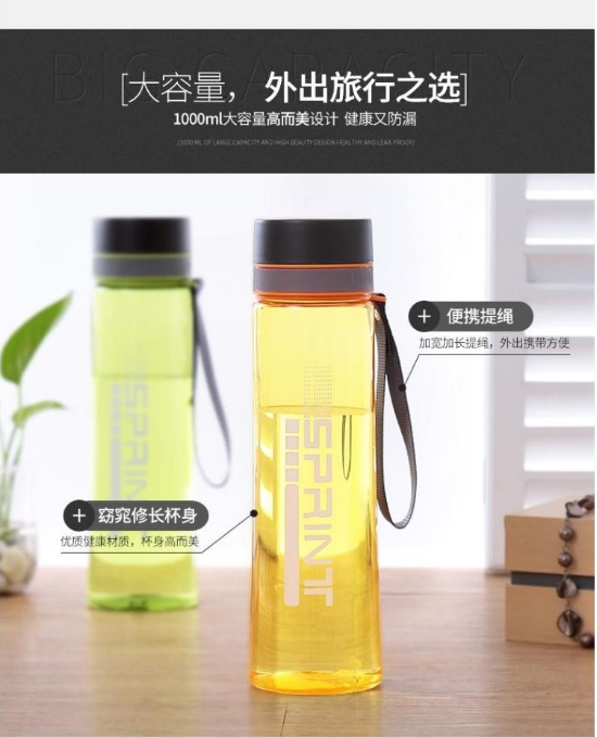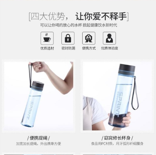 產品特點:食品用PC材質,月牙弧形纖細腰身,加寬加長提繩,外出攜帶方便,讓您喝的放心的水杯。