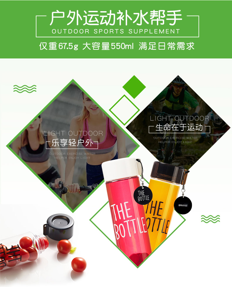 產品特點:采用精細螺旋設計,打破傳統硅膠圈結構,可做到滴水不漏,輕巧方便,隨時隨地補充水分